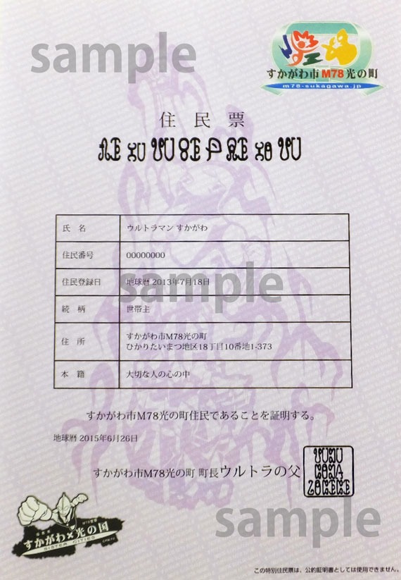 「すかがわ市M78光の町」の住民票を発行(20種類)
